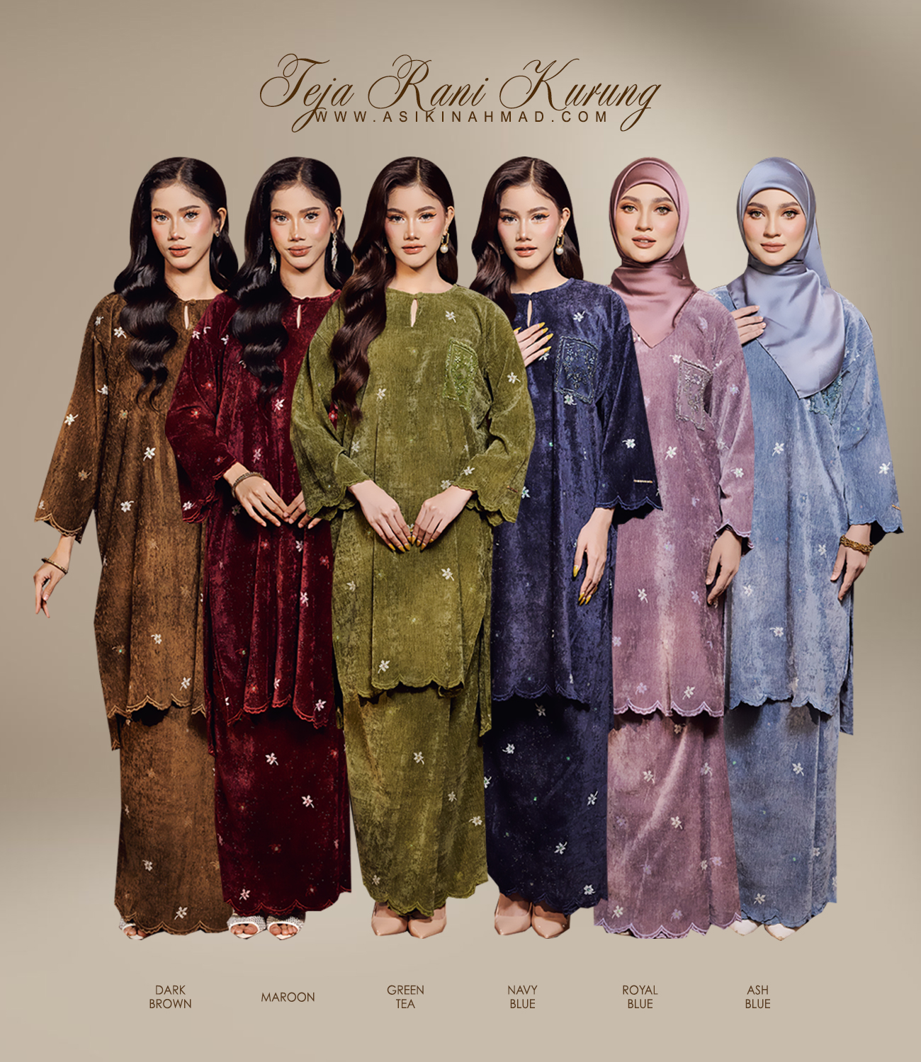 Kehalusan warisan yang disulam indah, hadir melalui sulam tebuk dan labuci halus di atas material Shantung Silk. Setiap potongan, dari kurung longgar yang moden hingga siluet Riau berpesak yang klasik, memelihara pesona lembut wanita Melayu masa lalu. Dengan kain kipas belakang yang anggun dan perincian manik premium, koleksi ini menterjemahkan tradisi ke dalam gaya moden yang penuh keanggunan.