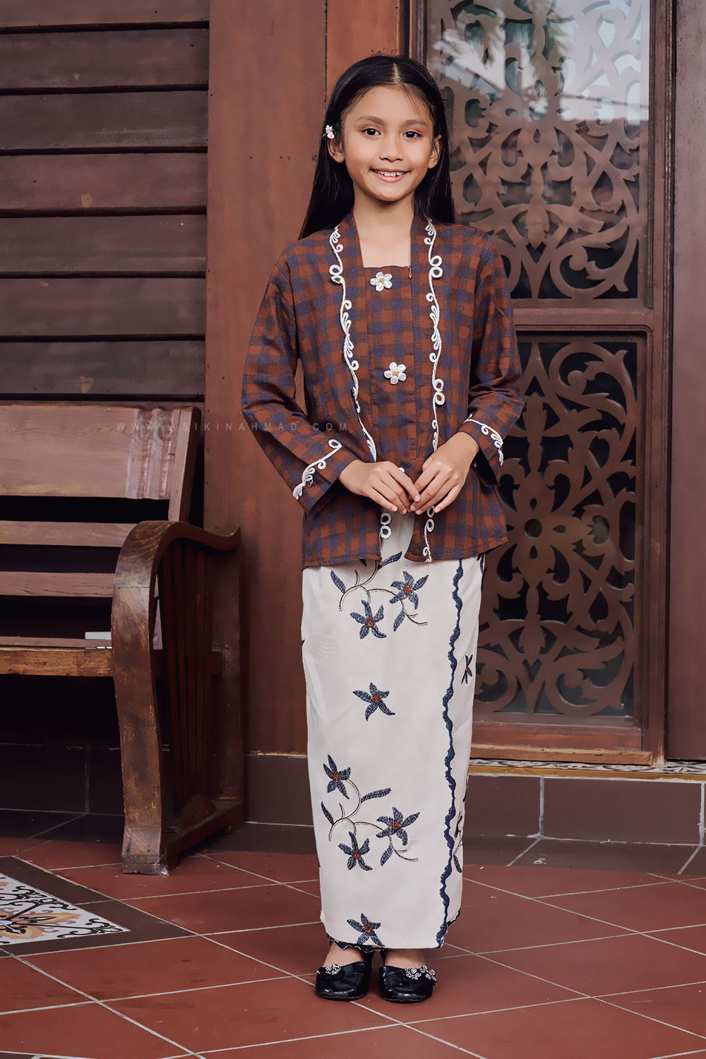 * Kebaya kutu bharu design with classic straight-cut kebaya silhouette.