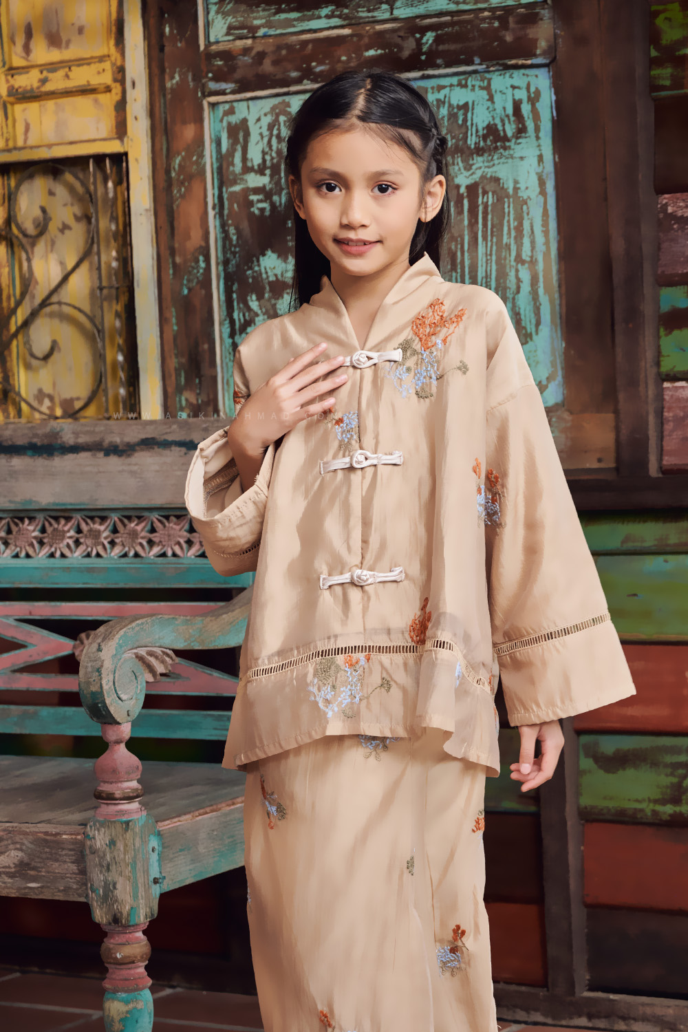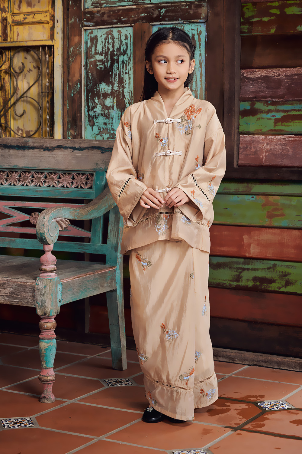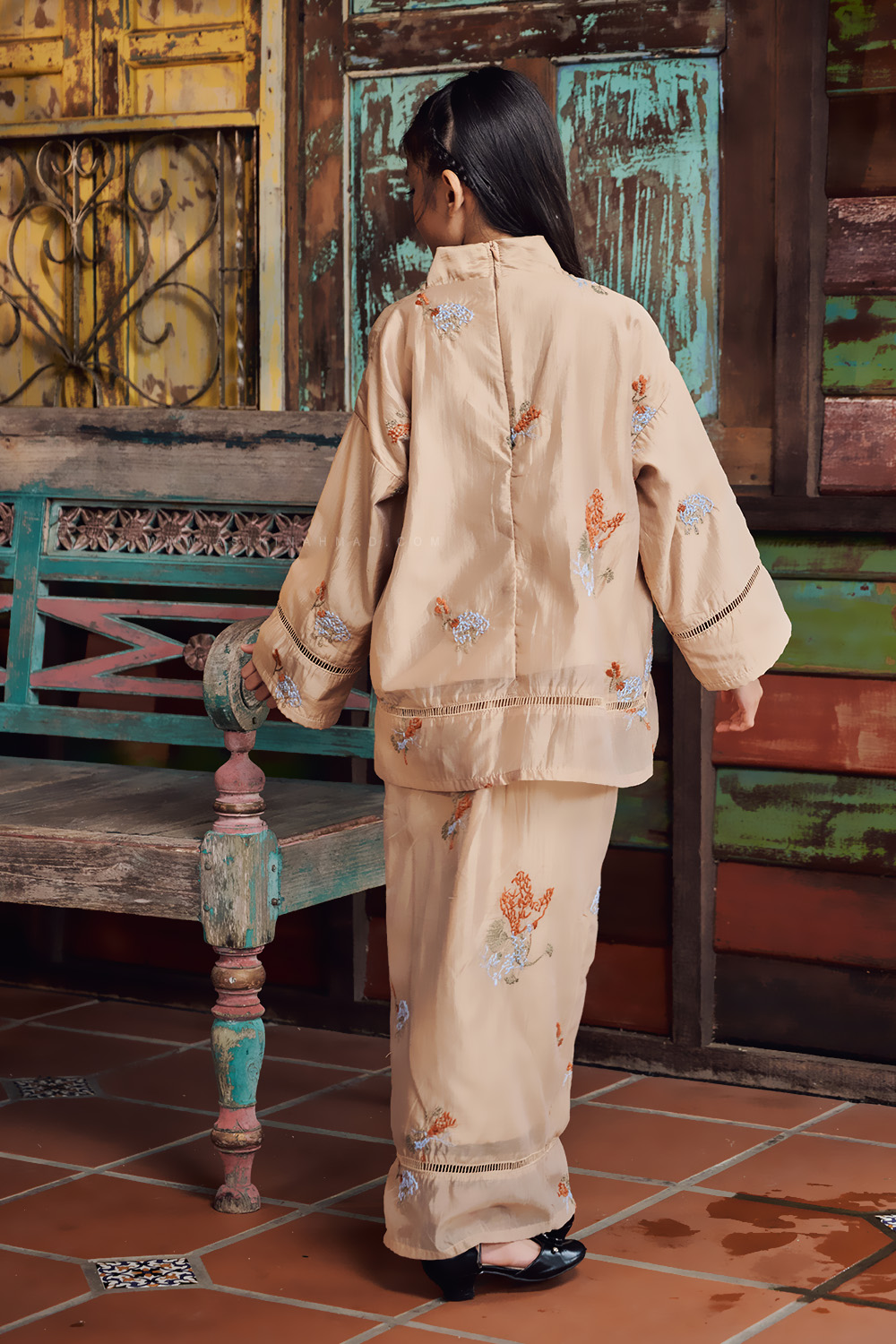 features delicate floral embroidery along the front and sleeve hems, giving it a soft, timeless look and suitable for daily wears