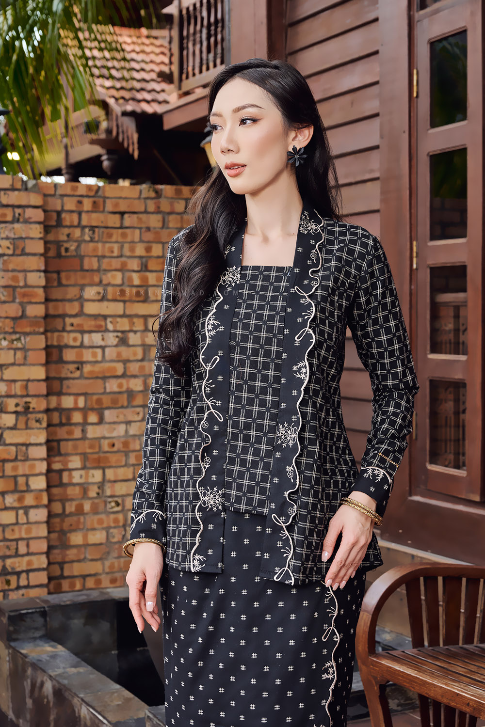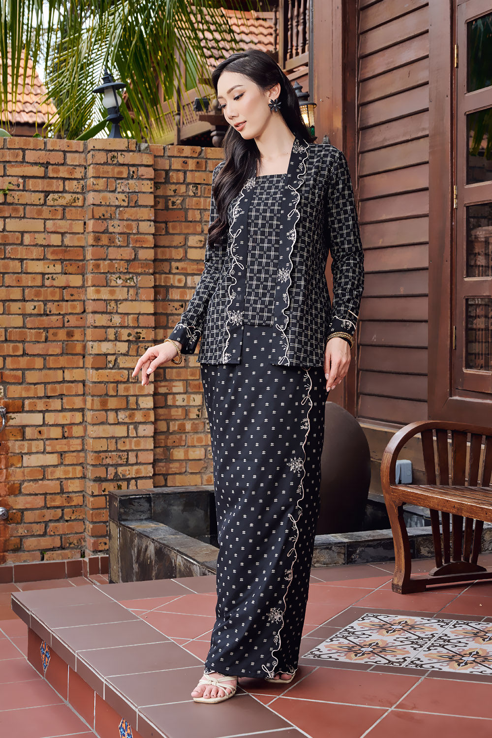 * Kebaya kutu bharu design with classic straight-cut kebaya silhouette.
