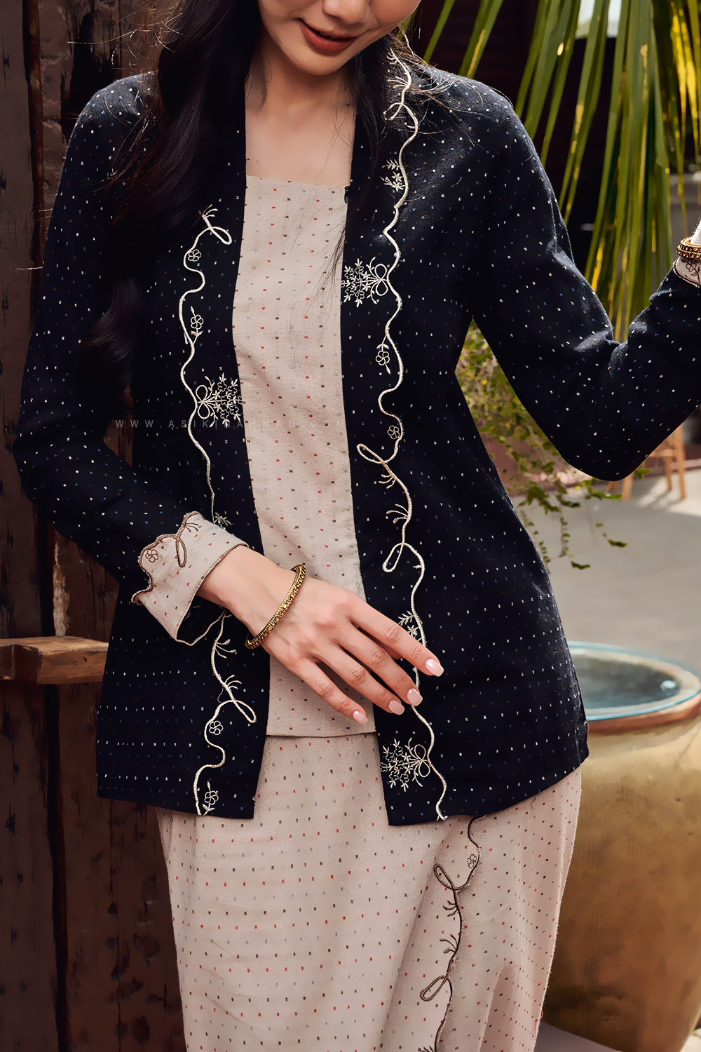 * Kebaya kutu bharu design with classic straight-cut kebaya silhouette.