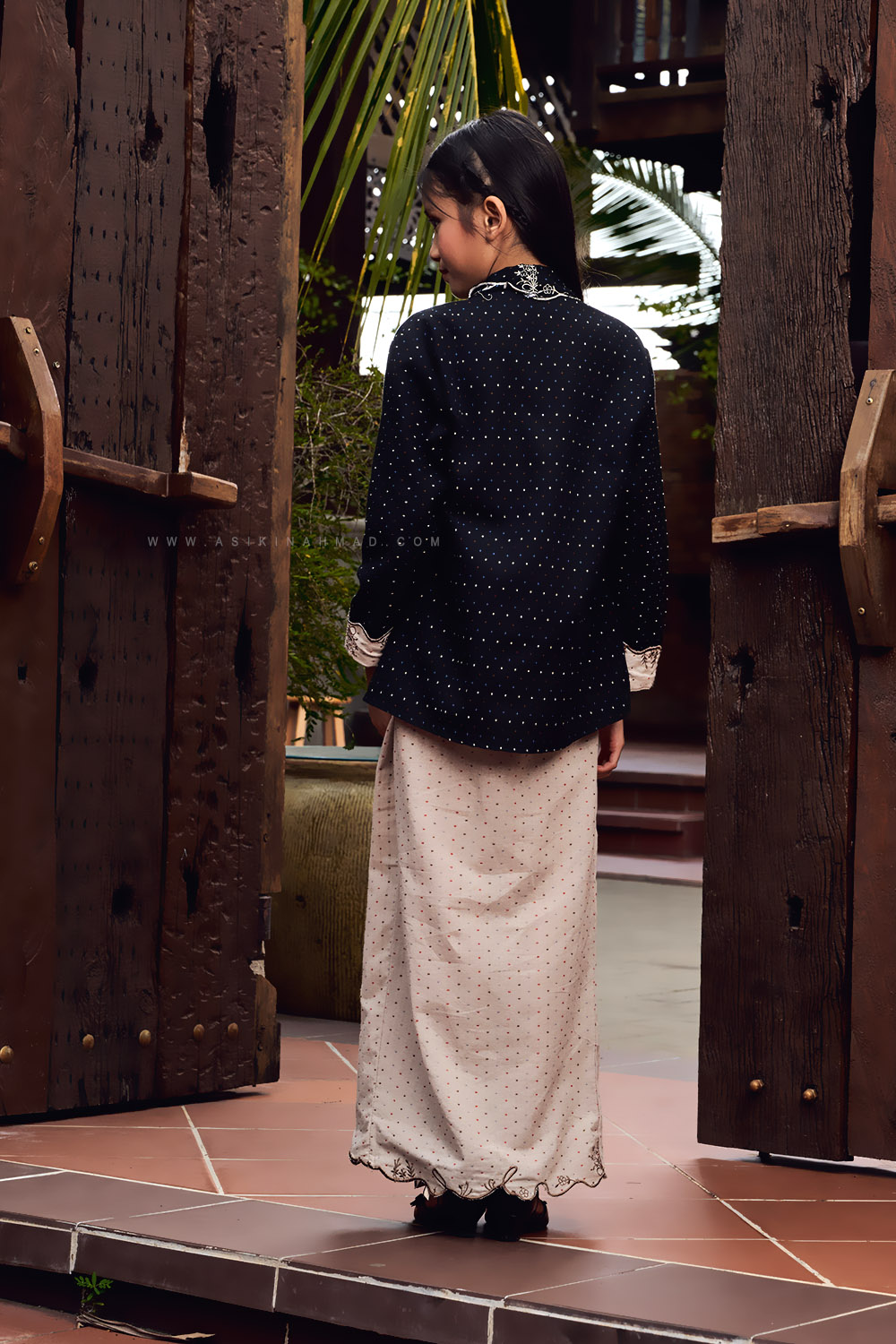 * Kebaya kutu bharu design with classic straight-cut kebaya silhouette.