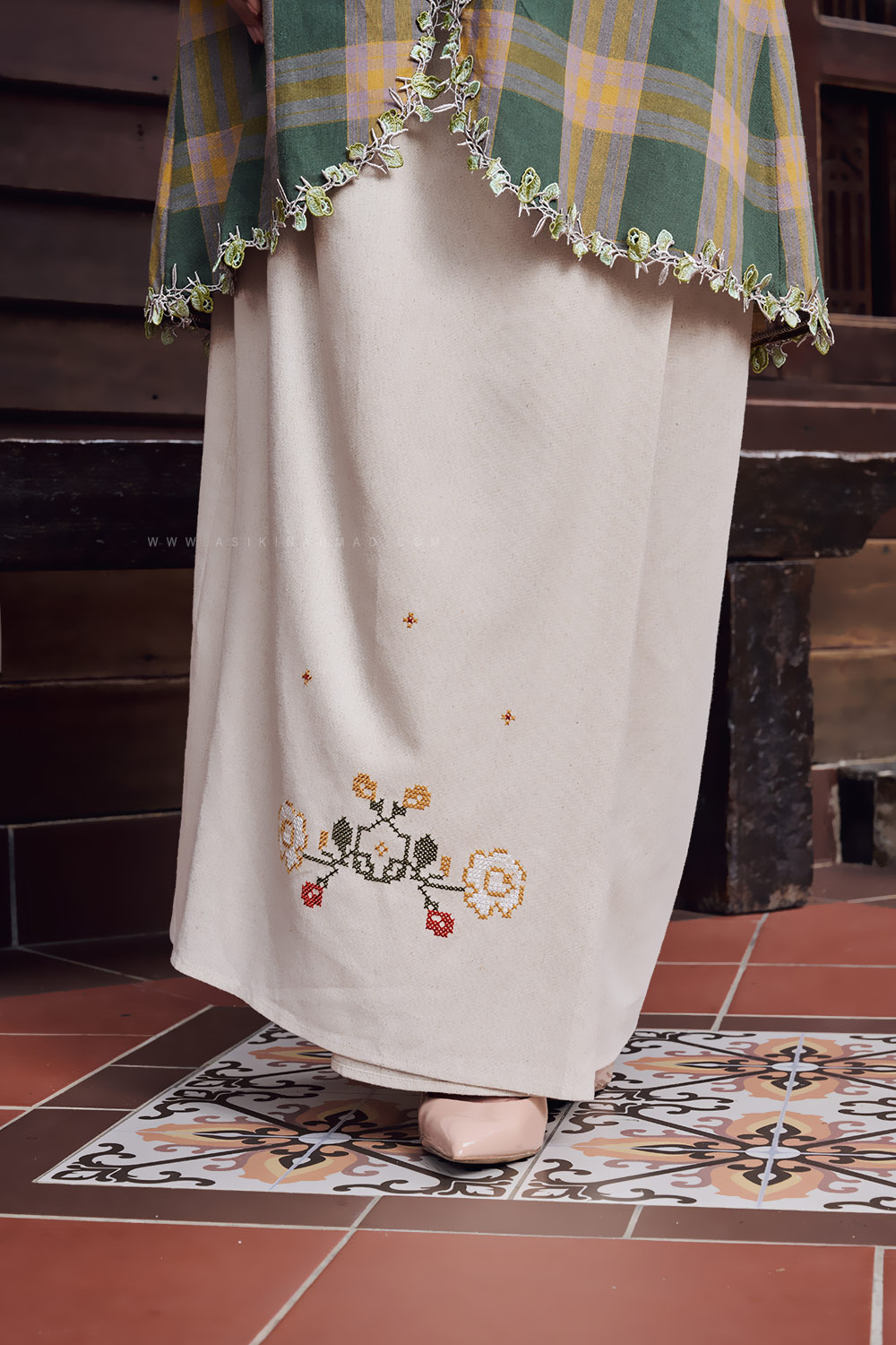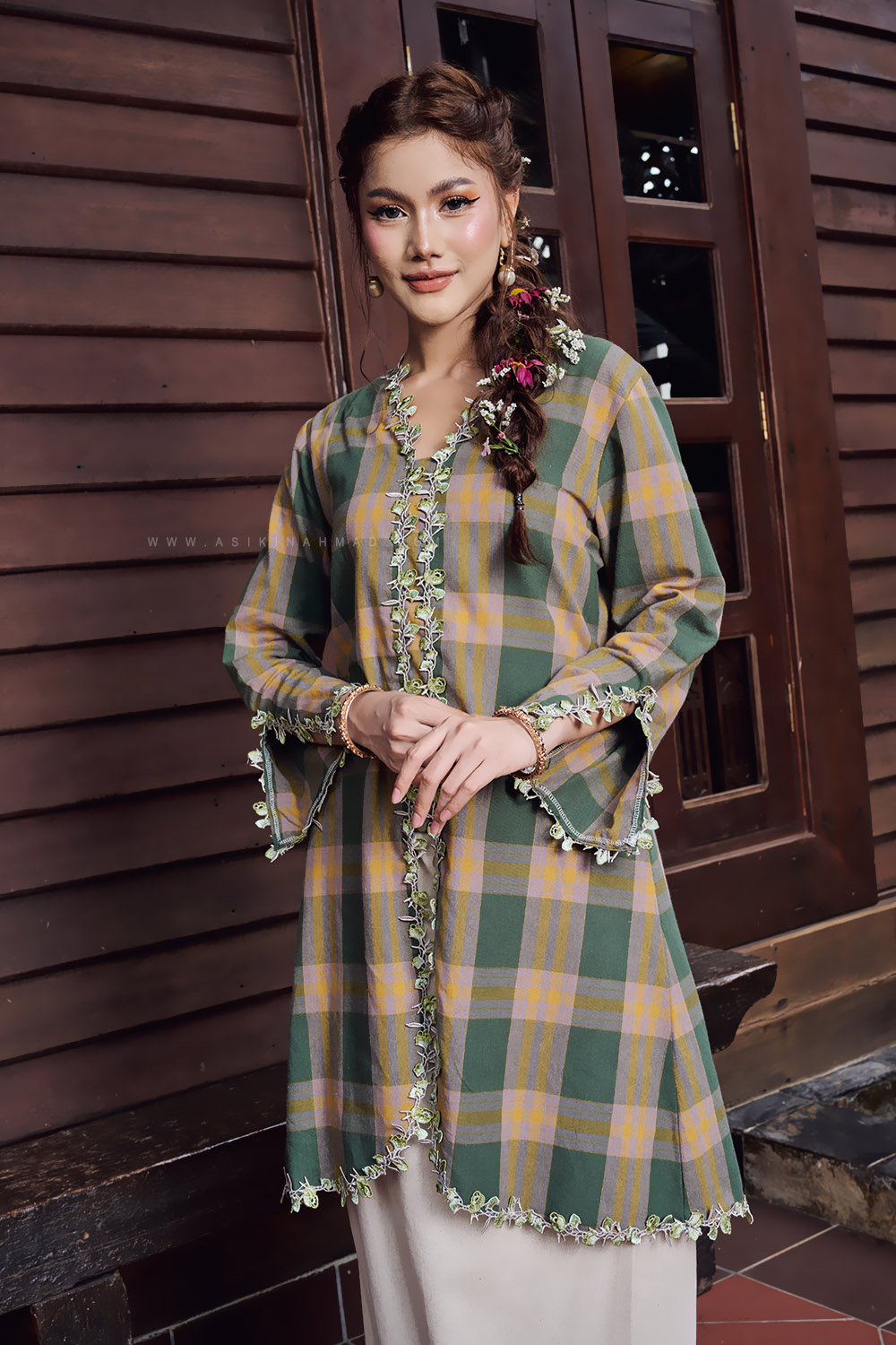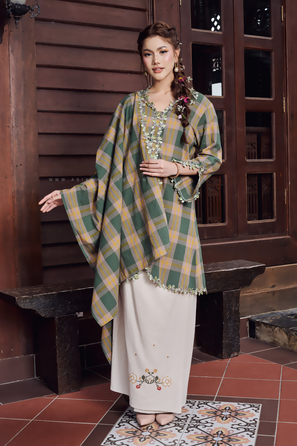 Accessories shown, including the selendang, are for styling purposes only and are not included.