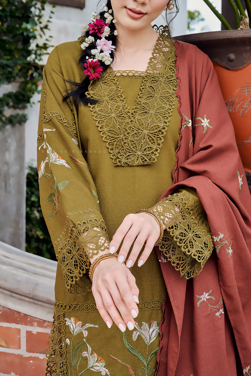 * Delicate floral embroidery detailing
