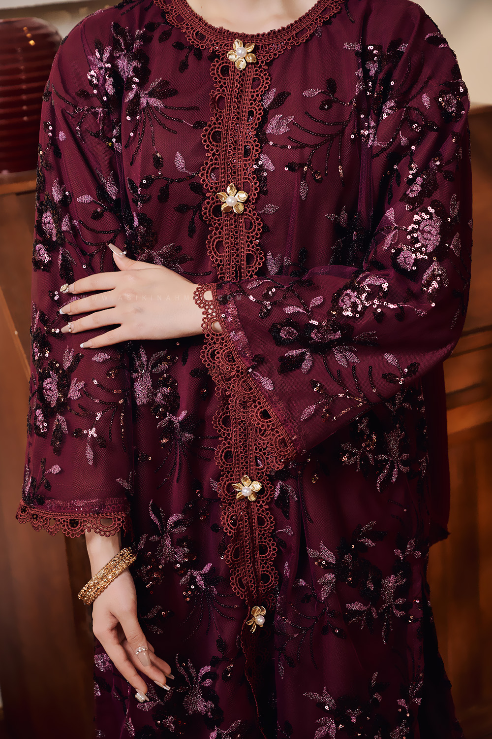 * Kurung loose-fit with Metallic thread embroidery