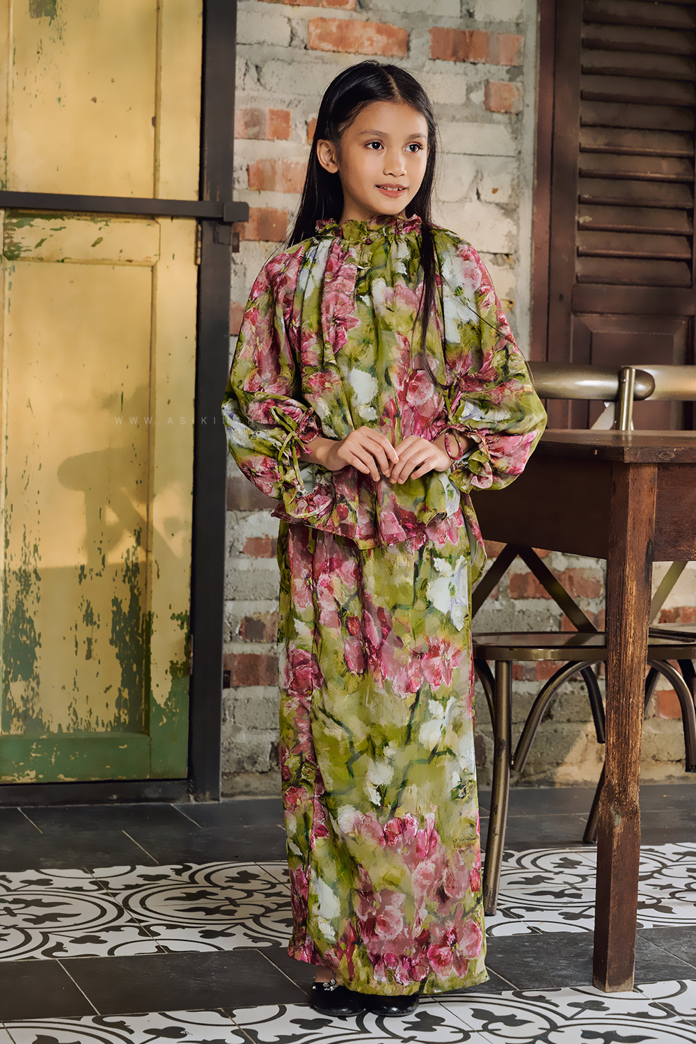 ORKID PRINTED KURUNG KIDS (BATCH 2) IN MATCHA STRAWBERRY