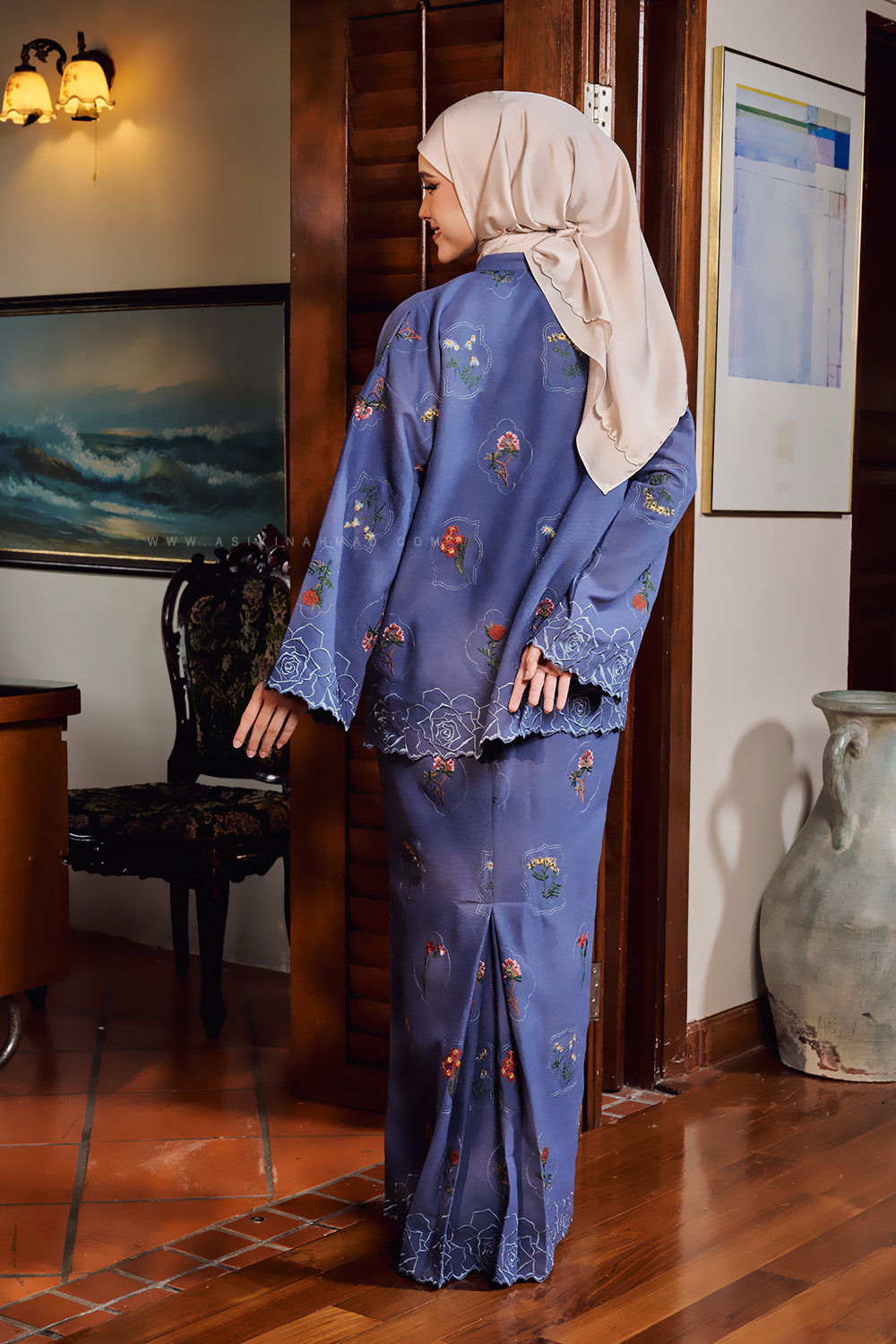 * Back-pleated skirt (kipas belakang) for better movement