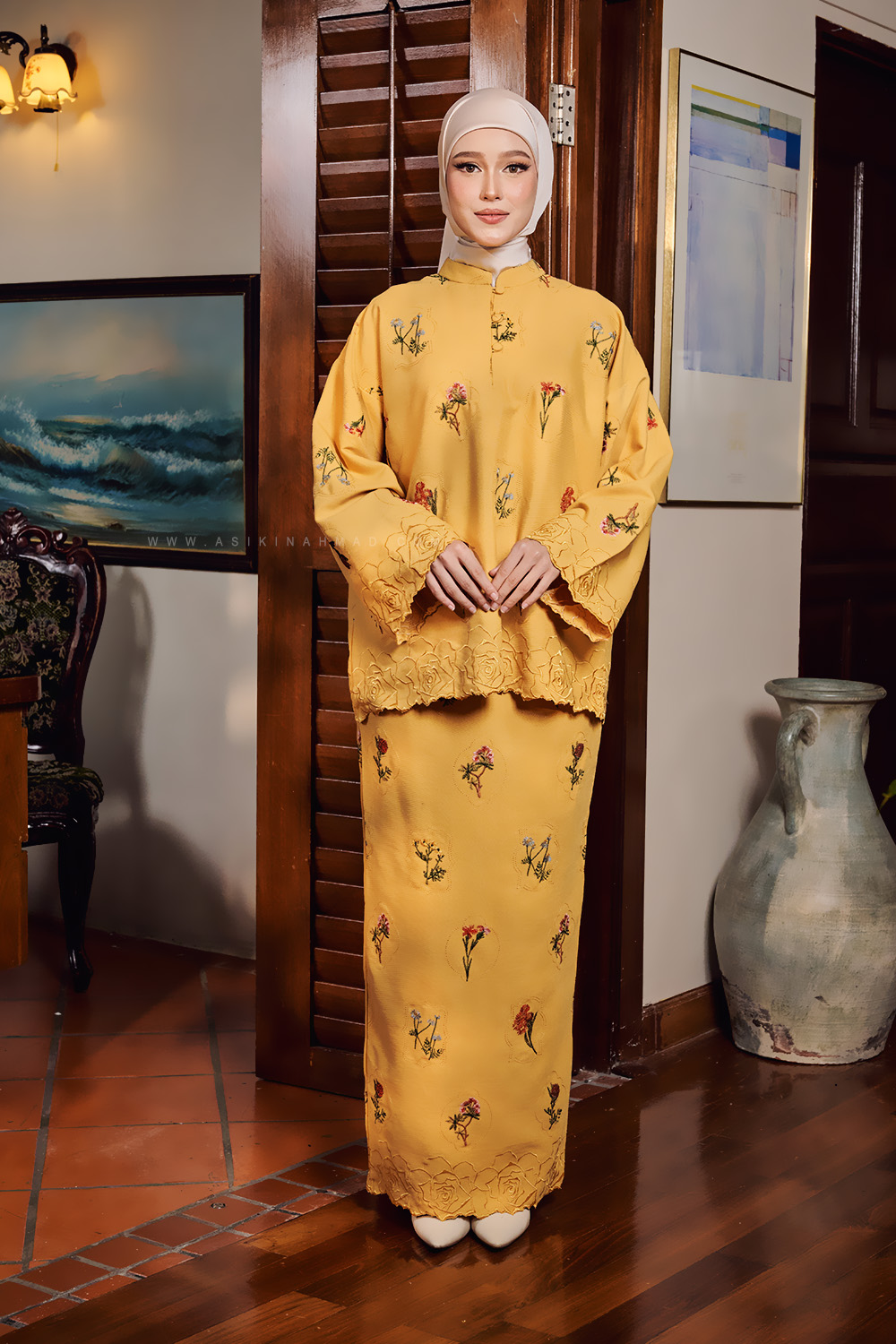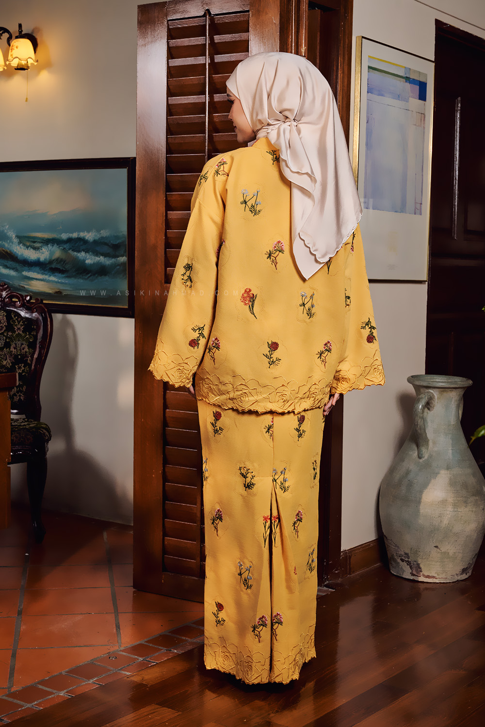 * Back-pleated skirt (kipas belakang) for better movement