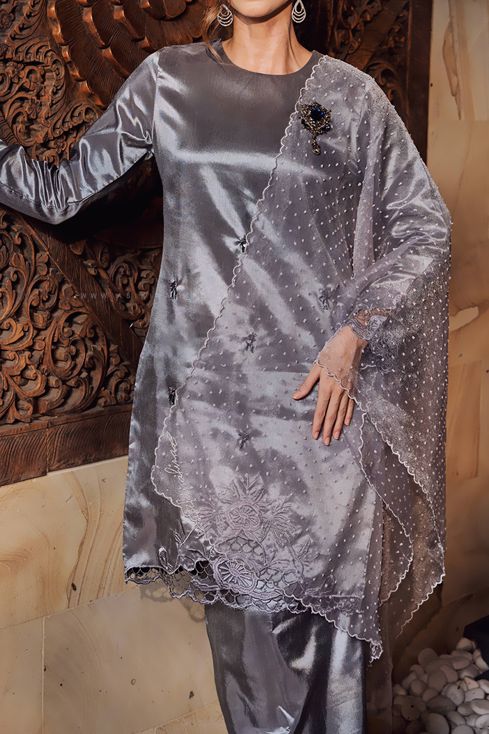 SELENDANG SHANTUNG SARI IN ASH GREY