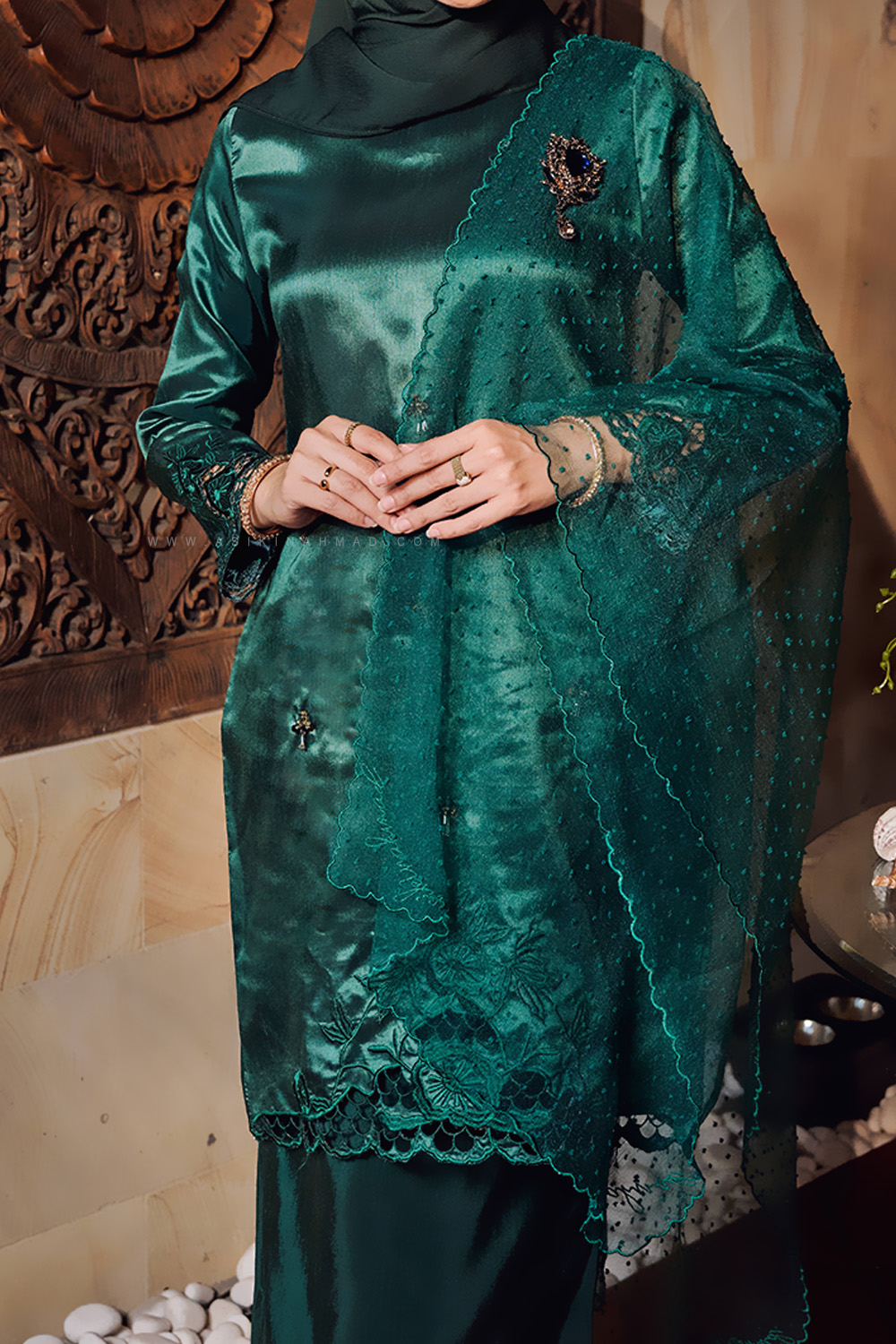 SELENDANG SHANTUNG SARI IN EMERALD GREEN
