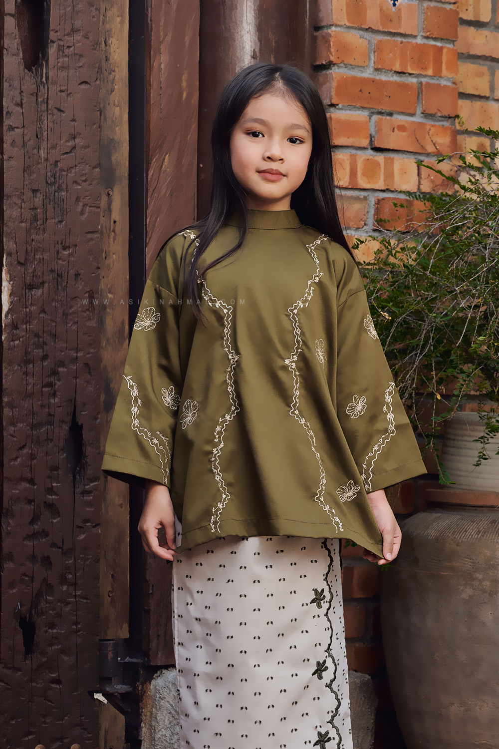 SEROJA RIMBA KIDS KURUNG IN OLIVE GREEN