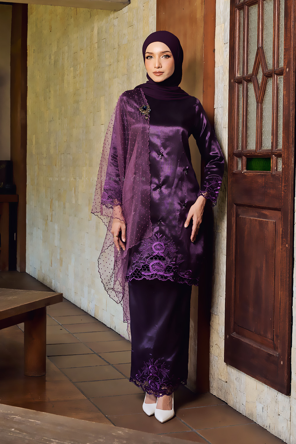 Material : Shantung Silk with featuring delicate sulam tebuk embroidery and subtle beading for an elegant, refined finish.