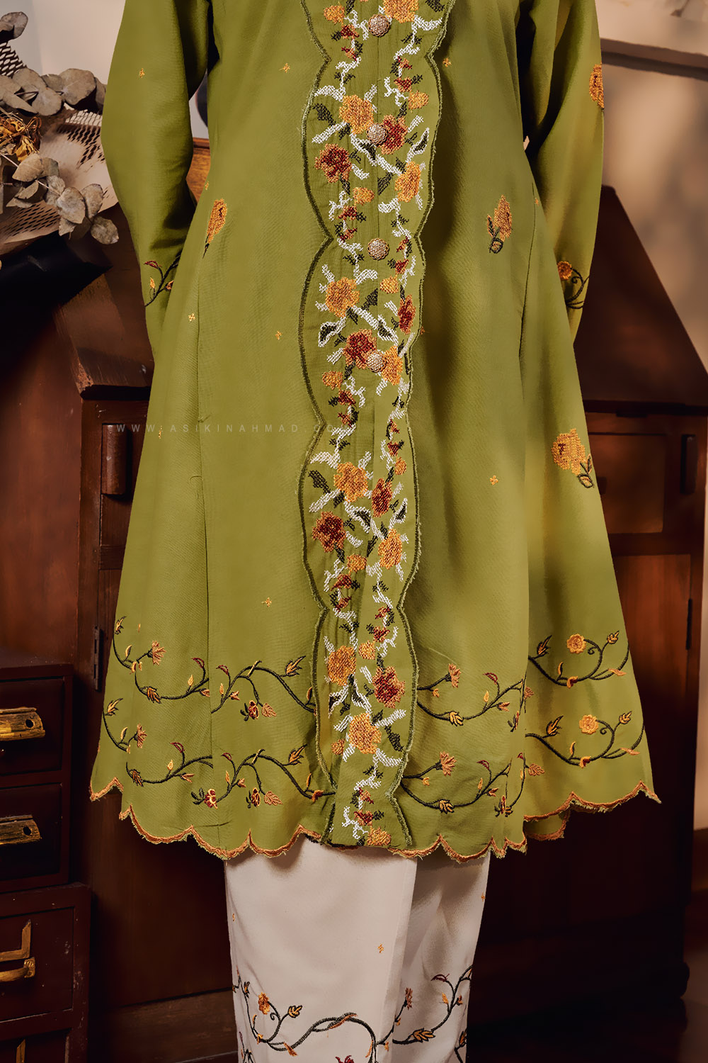 Material : Mix Linen Cotton with added custom embroidery
