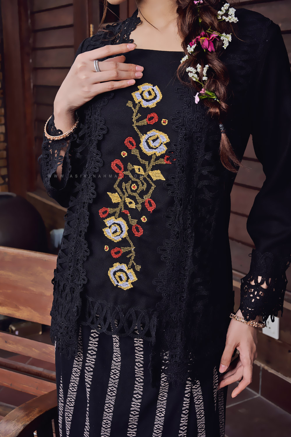 * Kebaya kutu bharu design with classic straight-cut kebaya silhouette.