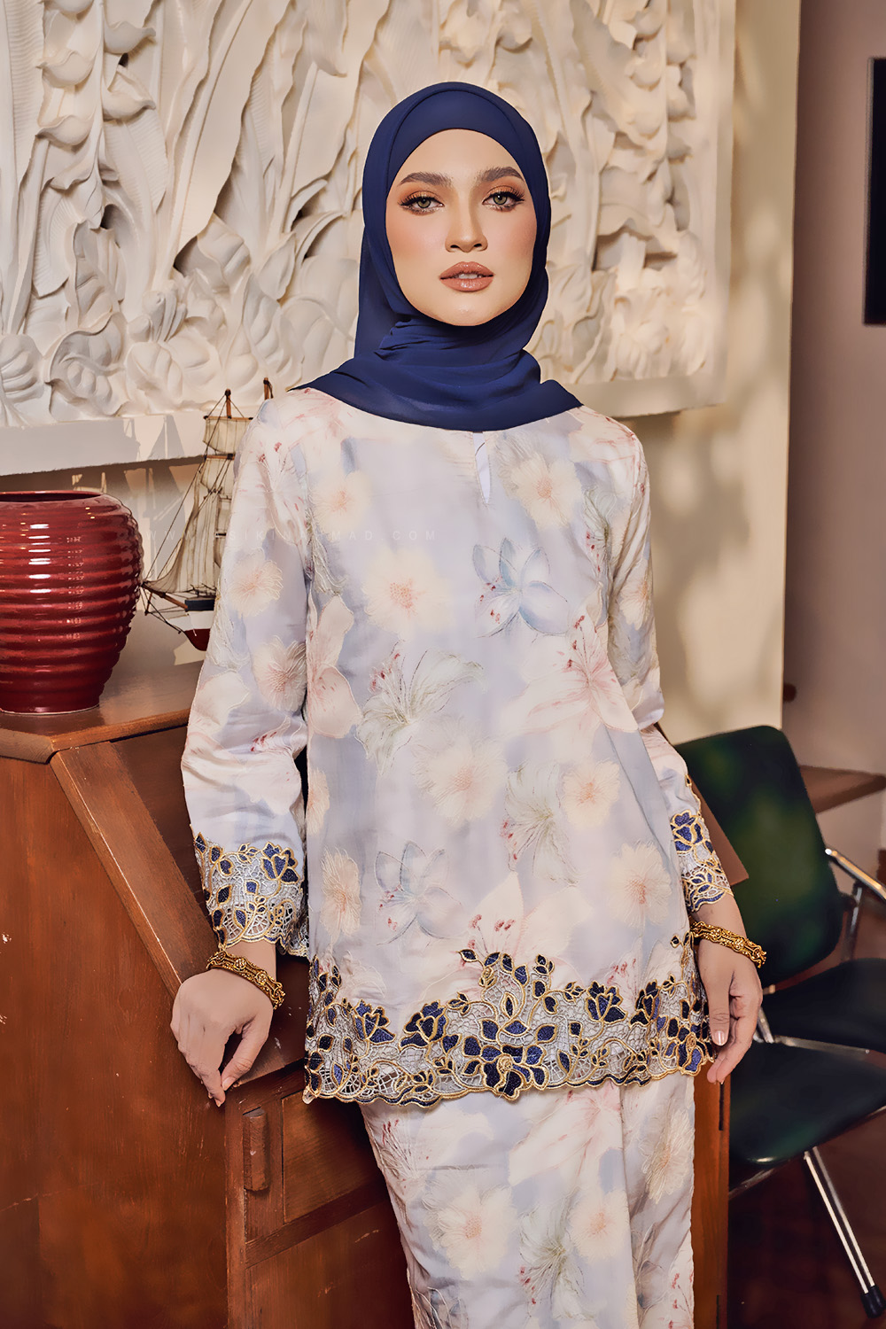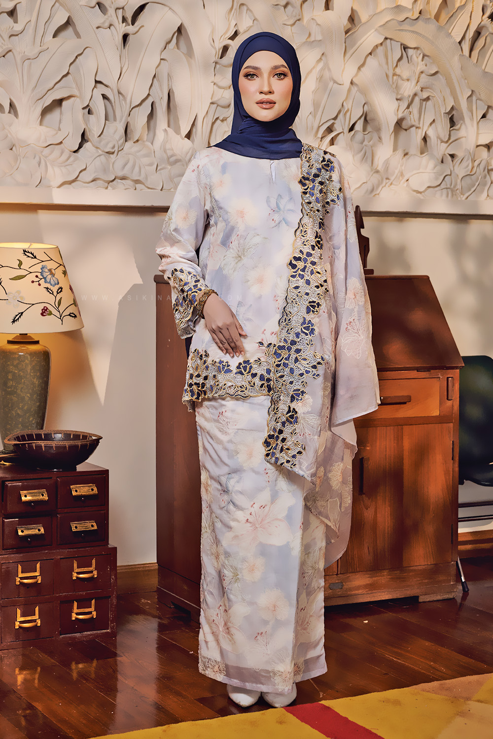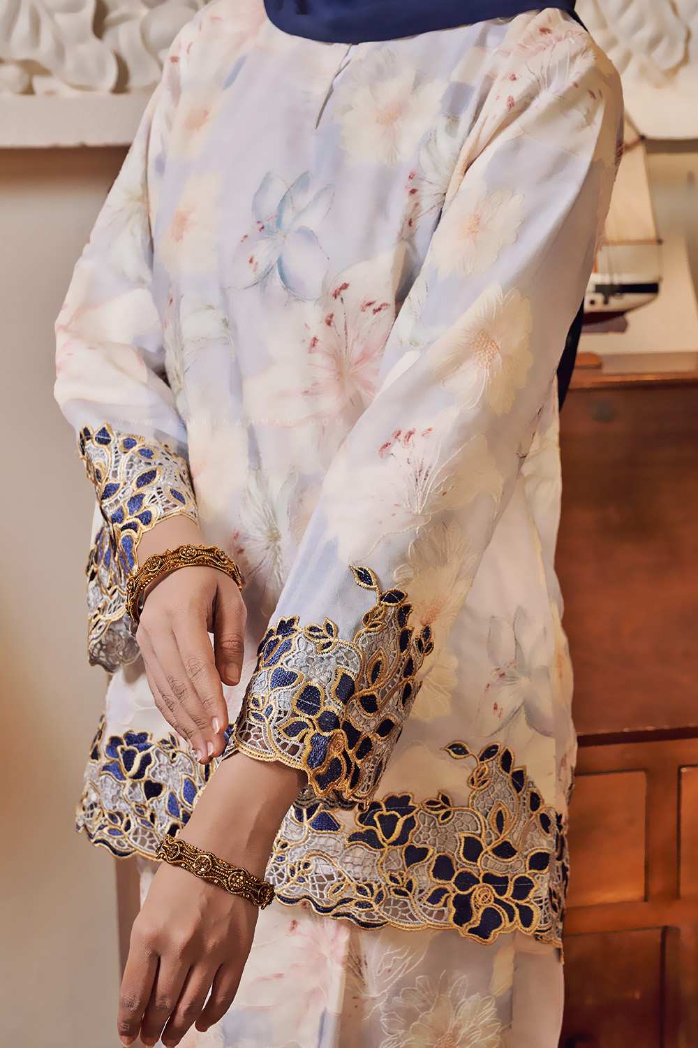 * Kurung Kedah loose-fit with embroidered lace